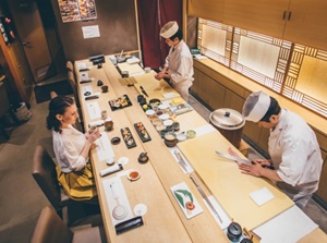 The guests should enjoy the art of Japanese dishes by the chefs while drinking alcohol.