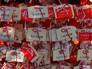 Then, you walk around the trees and the shrine with the Ema two times, then dedicate it during the third round and worship.