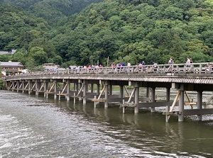 It is the symbol of Arashiyama, and is located about 180 meters south of Arashiyama station of Randen.