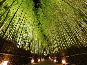 600 poles decorated with Kyo-Yuzen dying for Kimono stand along the passageway.