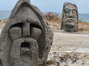 Yunohama Onsen by the west coast is an outdoor bath and the models of ancient Greece are set up.